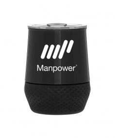 12 oz double wall 18/8 stainless steel thermal tumbler with copper vacuum insulation, push-on lid, matching swivel closure, and removable silicone base.