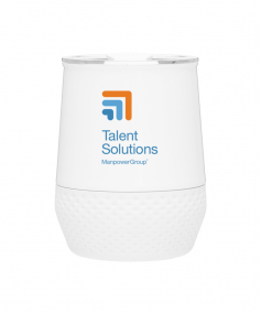 12 oz double wall 18/8 stainless steel thermal tumbler with copper vacuum insulation, push-on lid, matching swivel closure, and removable silicone base.