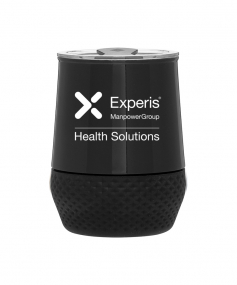12 oz double wall 18/8 stainless steel thermal tumbler with copper vacuum insulation, push-on lid, matching swivel closure, and removable silicone base.