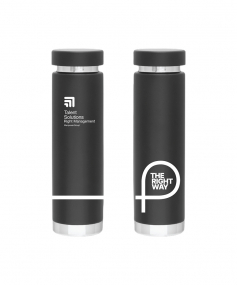 16.9 oz. double wall 18/8 stainless steel thermal bottle with copper vacuum insulation, threaded insulated stainless steel lid, high polish rim and base, and powder coated finish. Hand wash recommended; Do not microwave. Dimensions: 9 3/8 H x 2 5/8".