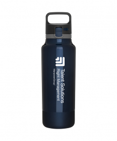 25 oz double wall 18/8 stainless steel thermal bottle with copper vacuum insulation, threaded one-touch push-button lid, locking mechanism, carrying handle, and rubberized base - patent pending - gift box included; Hand wash recommended; Do not microwave; 11 h x 3 w ; 739mL.