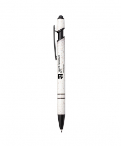 The Austen Clicker Pen comes in a variety of bright and vibrant colors and is made from a durable eco-friendly composite wheat straw (40% wheat straw mix). Includes a stylus pusher and satin black accents.