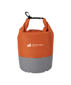 Keeps your items dry and comes in a chic two-tone design. It has a roll top closure with a buckle to connect to other bags and a carabiner clip to connect to a backpack or tether to a raft rope. Made from heathered 300D polyester, it has a 5 liter capacity and can float if dropped in water. Complies with Prop 65. 7" W x 13" H x 7" D