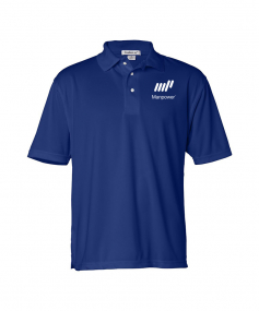 Made of 4.0 Oz., 100% polyester. Features moisture wicking fabric, fashion knit collar with box placket and three white pearlized buttons, and double-needle stitched cuffs and side vents.