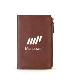 Stylish executive notebook with PU/split leather outer and suede inner cover. Features large zipper pocket (fits up to iPhone 7S Plus). Includes 80-sheet replaceable notebook. 5 3/4" H x 8 1/2" H