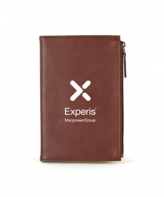 Stylish executive notebook with PU/split leather outer and suede inner cover. Features large zipper pocket (fits up to iPhone 7S Plus). Includes 80-sheet replaceable notebook. 5 3/4" H x 8 1/2" H