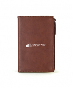 Stylish executive notebook with PU/split leather outer and suede inner cover. Features large zipper pocket (fits up to iPhone 7S Plus). Includes 80-sheet replaceable notebook. 5 3/4" H x 8 1/2" H