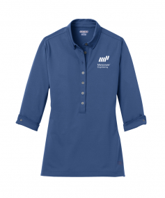 Break away from the ordinary in this button-down style polo that features cuffed 3/4 sleeves.