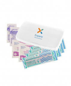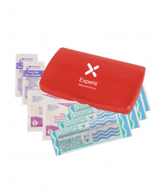 Ultra-trim case contains 4-latex-free bandages, 2-antiseptic towelettes and 2-first aid cream packets. Complies with Prop 65. 2 9/16" W x 4 1/8" H x 1/2" D