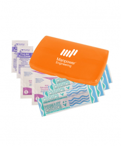Ultra-trim case contains 4-latex-free bandages, 2-antiseptic towelettes and 2-first aid cream packets. Complies with Prop 65. 2 9/16" W x 4 1/8" H x 1/2" D