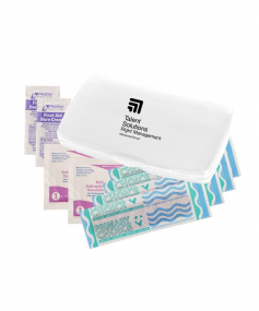 Ultra-trim case contains 4-latex-free bandages, 2-antiseptic towelettes and 2-first aid cream packets. Complies with Prop 65. 2 9/16" W x 4 1/8" H x 1/2" D
