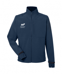 93% stretch polyester, 7% elastane double weave; Brushed interior 75% recycled polyester, 25% polyester ; Exposed, reverse coil zipper; Internal draft flap ; Debossed Spyder neck tape & internal locker loop; Forward-set shoulder seams; Stylized back yoke; Interior stretch storm cuffs with thumb holes; Adjustable cuff tabs; Reverse coil left-chest & hand pockets; Hem cinch-cord;